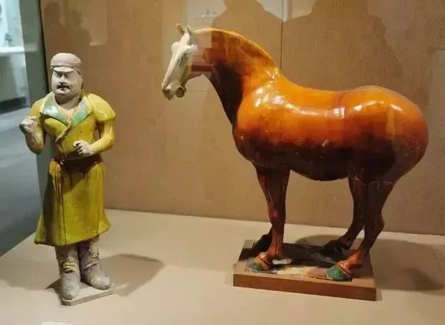 ▲三彩马夫与三彩马 唐代 马夫高65.4cm