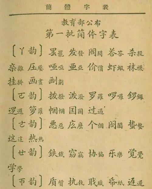 1935年,国民政府在钱玄同编写的《简体字谱》基础上颁布了《简体字推行法令案》,并由教育部公布《第一批简体字表》。很可惜由于保守势力的强烈反对,不久便宣布作废。