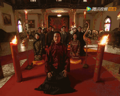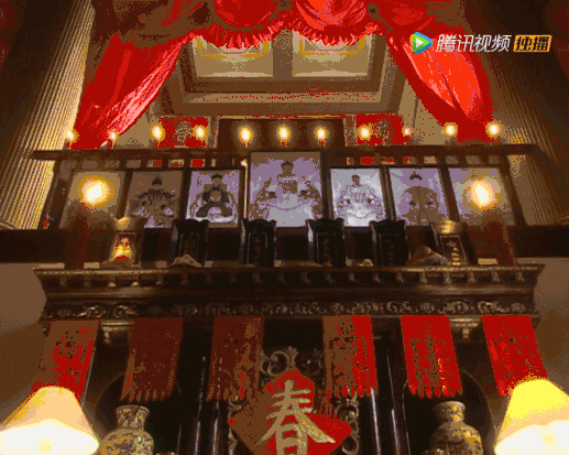 如《金粉世家》中,家大业大的金家在室内供有木牌位祠堂,所以全家人可以在屋内进行祭祖。由嫡长子金凤举敲锣,来开启这场仪式。